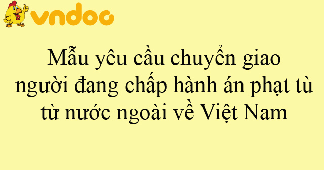 Mẫu yêu cầu chuyển giao người đang chấp hành án phạt tù từ nước ngoài về Việt Nam là mẫu bản yêu cầu được lập ra để yêu cầu về việc chuyển giao người đang chấp hành phạt tù từ nước ngoài về Việt Nam. Mẫu nêu rõ nội dung yêu cầu, thông tin người chuyển giao…